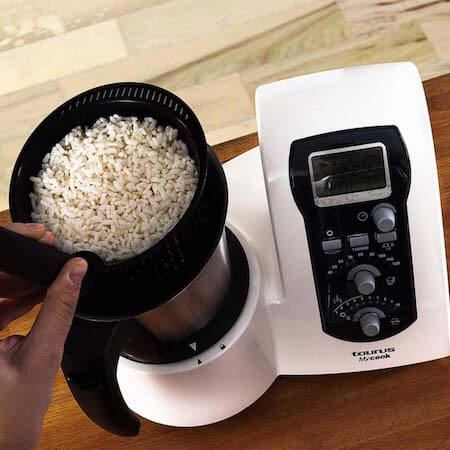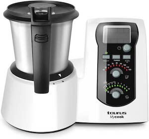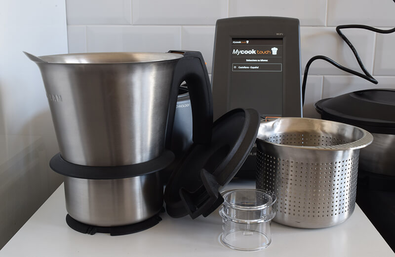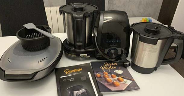 Este robot es un tipo de aparato muy bueno si lo que quieres es ahorrar tiempo. Simplemente tienes que meter los ingredientes y él solo procederá a cortarlos, calentarlos, mezclarlos…